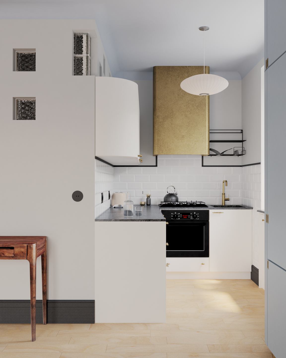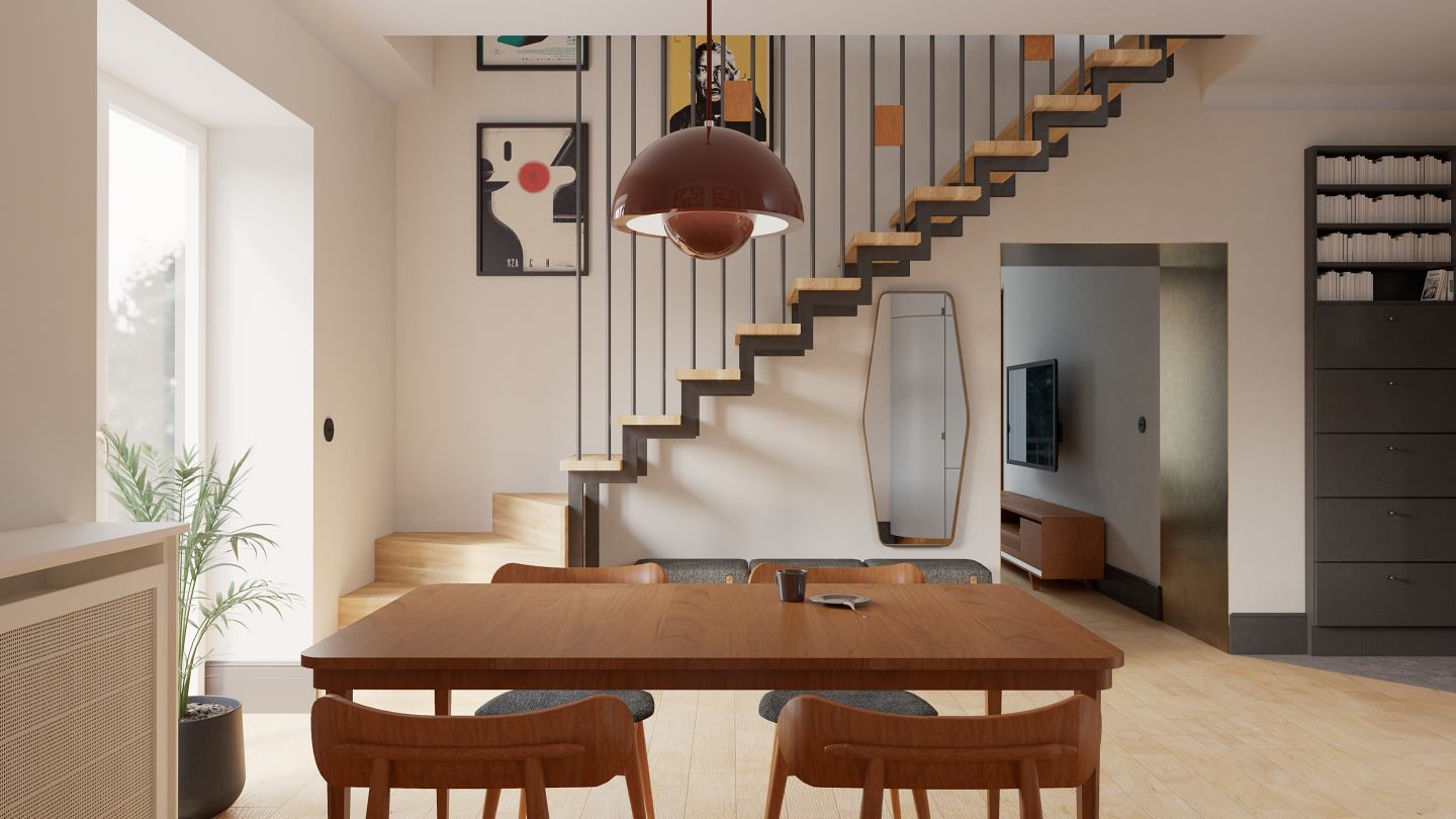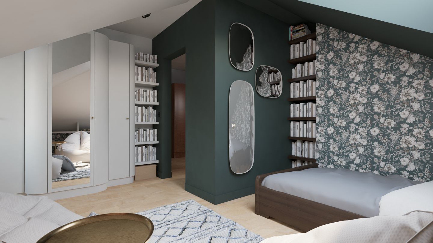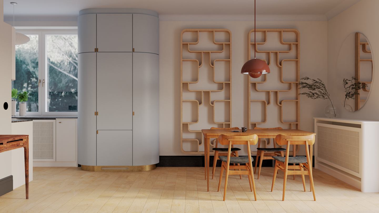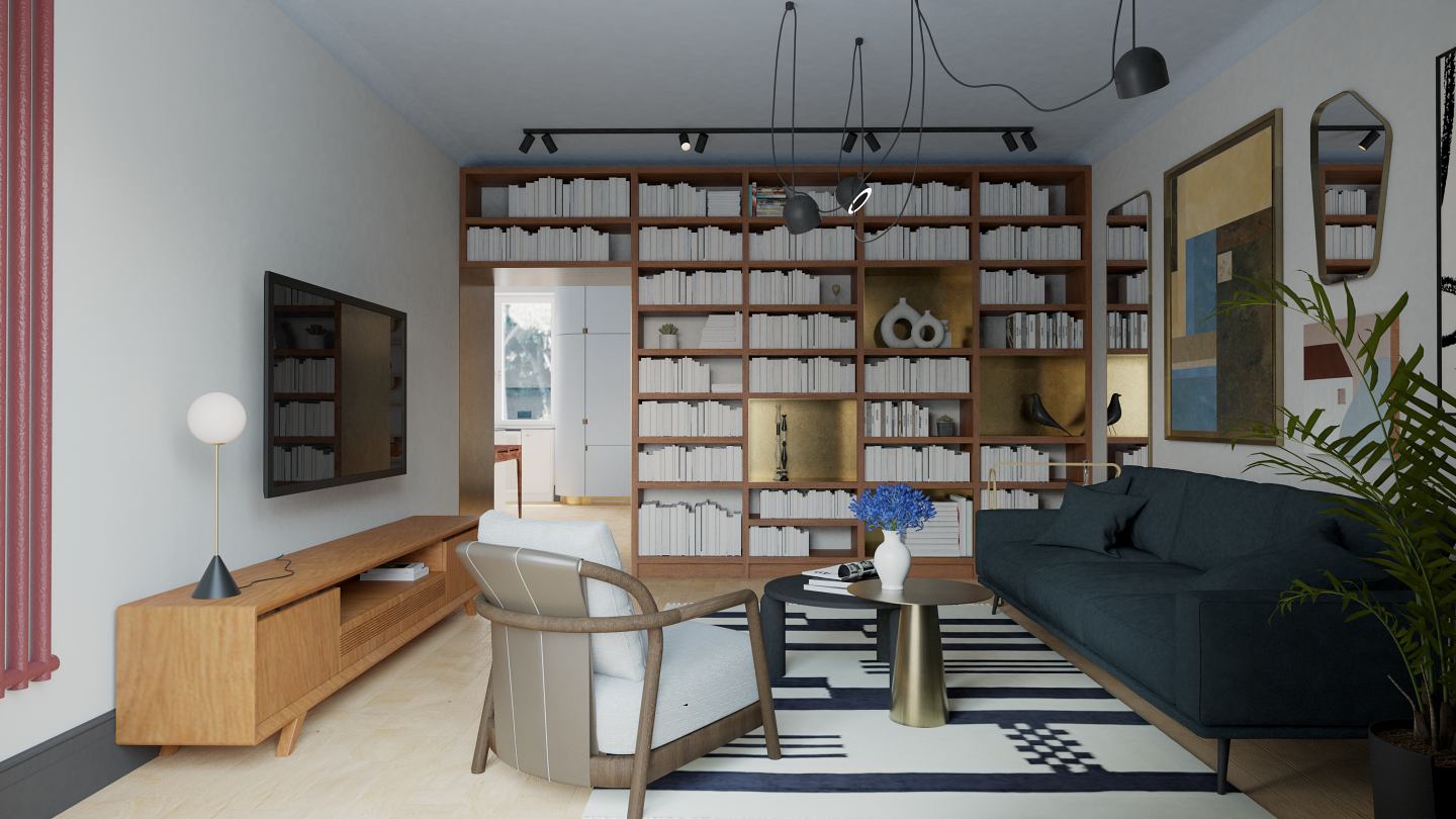 Dla jednego z nowo powstałych mieszkań opracowano szczegółowy projekt wnętrz. Zamiłowanie inwestorów do modernistycznej estetyki lat 50. pozwoliło na stworzenie wnętrza inspirowanego stylistyką vintage, z wykorzystaniem oryginalnych mebli i detali nawiązujących do tego okresu.