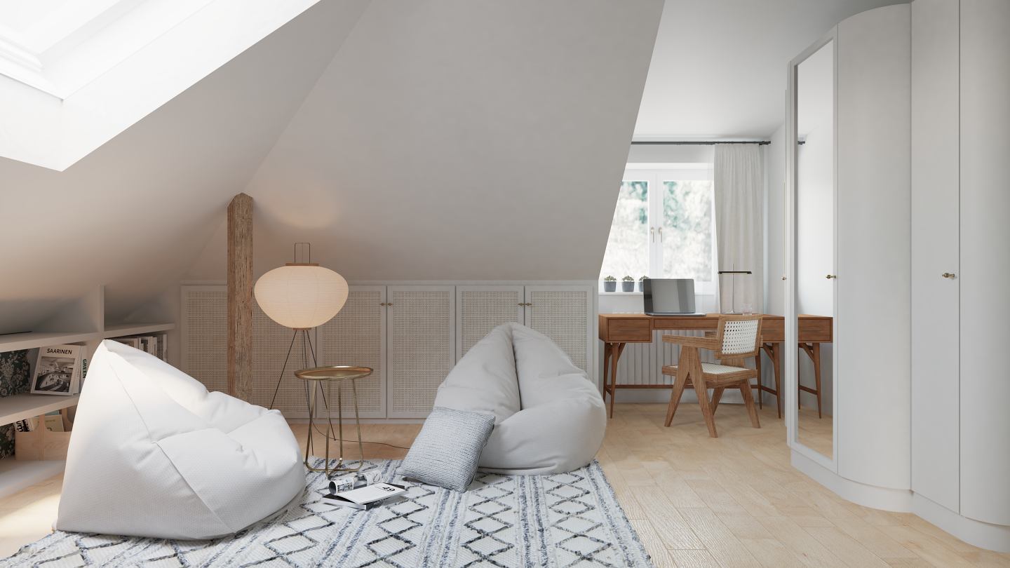 Głównym celem inwestycji była adaptacja nieużytkowego poddasza w celu powiększenia dwóch istniejących lokali mieszkalnych. W wyniku przebudowy powstały komfortowe mieszkania dwupoziomowe, które znacząco podniosły standard użytkowy budynku, a także zwiększyły jego wartość funkcjonalną. Zakres prac obejmował również przebudowę dachu oraz remont elewacji, realizowane w ścisłej współpracy i uzgodnieniach z konserwatorem zabytków.