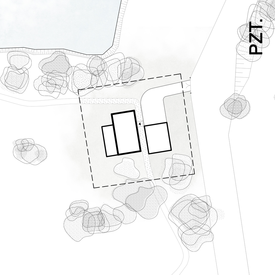 W malowniczym otoczeniu, na tle zieleni i nad brzegiem spokojnego stawu, powstaje wymarzony dom dla dwojga. To miejsce szczególne – nie tylko ze względu na urokliwe położenie, ale i kontekst: budynek wpisuje się w starannie zaprojektowane założenie ogrodowe, tworzone przez właścicieli z pasji do natury i wieloletniego doświadczenia w prowadzeniu szkółki roślin ozdobnych.