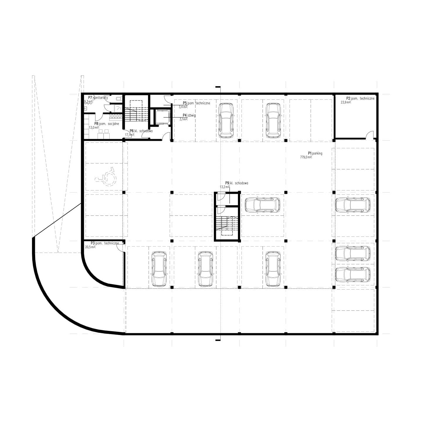 Bryła budynku uformowana została jako prosta, prostopadłościenna kubatura, wpisująca się w nieregularną zabudowę sąsiadującą.