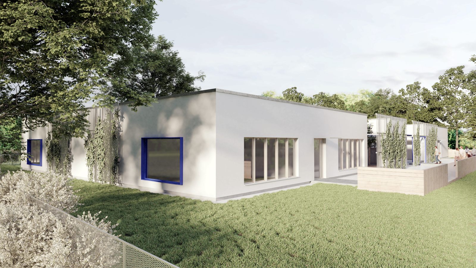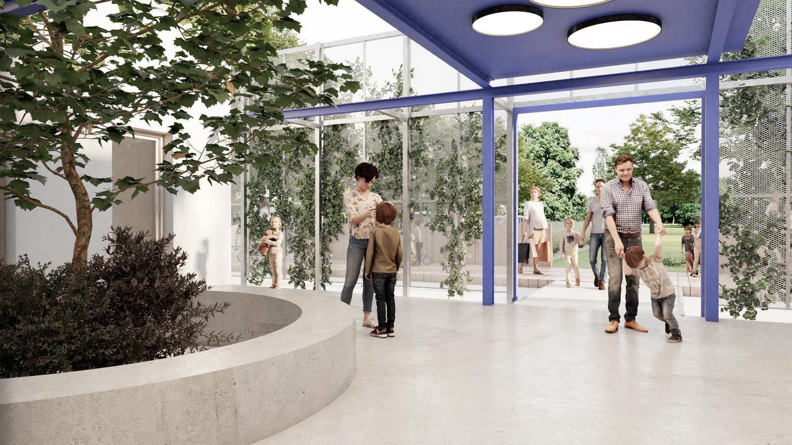 Południowa część budynku została zaprojektowana tak, aby sale zajęciowe miały bezpośredni dostęp do dwóch mniejszych dziedzińców. Wycięcia te, osłonięte ażurowymi przegrodami, tworzą przytulne, bezpieczne przestrzenie służące jako zewnętrzne sale zajęciowe, umożliwiające prowadzenie zajęć na świeżym powietrzu przy jednoczesnym zachowaniu ochrony przed nadmiernym nasłonecznieniem.